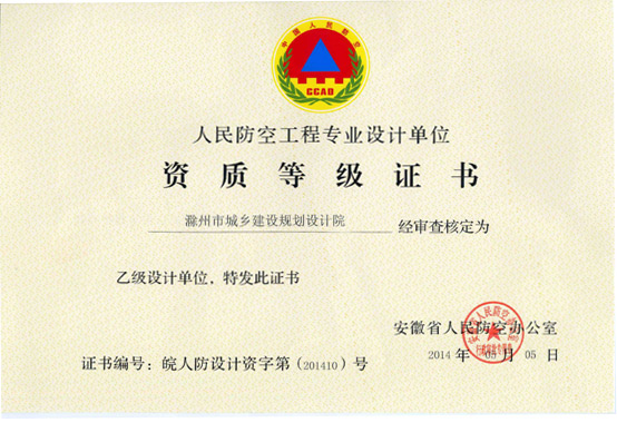 經(jīng)過(guò)建筑室、辦公室和總師室的共同努力,我院申報(bào)的人防工程設(shè)計(jì)乙級(jí)資質(zhì),于2014年5月5日獲得安徽省人民防空辦公室批準(zhǔn),這標(biāo)志著我院可以承擔(dān)本省范圍內(nèi)2萬(wàn)平方米以下人防工程建設(shè)項(xiàng)目(不含各類人防指揮所、專業(yè)隊(duì)工程、醫(yī)療救護(hù)工程、一等人員掩蔽部)主體工程、配套工程及地面附屬設(shè)備設(shè)施用房的設(shè)計(jì)業(yè)務(wù)。